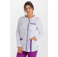 Chaqueta de mujer en manga larga, fabricada en sarga elástica. Prenda con cuello mao, modelo cruzado con botones detalle transparentes, se abrocha con corchetes ocultos en tapeta. Dispone de dos bolsillos inferiores. Prenda muy elegante y cómoda, ideal para tu uniforme.