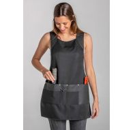 Delantal peto de loneta bicolor gris forma asimétrica para comercio en tejido de loneta gris claro y gris ceniza. Dispone de un bolsillo inferior y un bolsillo en el pecho acabado con remaches. Tirante gris regulable con hebilla y cintas de color gris para atar. Muy bonito y original con detalle hebilla en la cintura. Con cinta interior para poder...